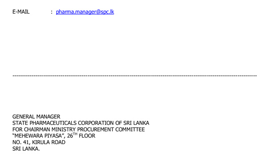 The Chairman, Ministry Procuremnet Committee of the State Ministry of Production, Supply and Regulation of Pharmaceuticals is calling sealed bids for supply of following item to the Ministry of Health for year 2022.