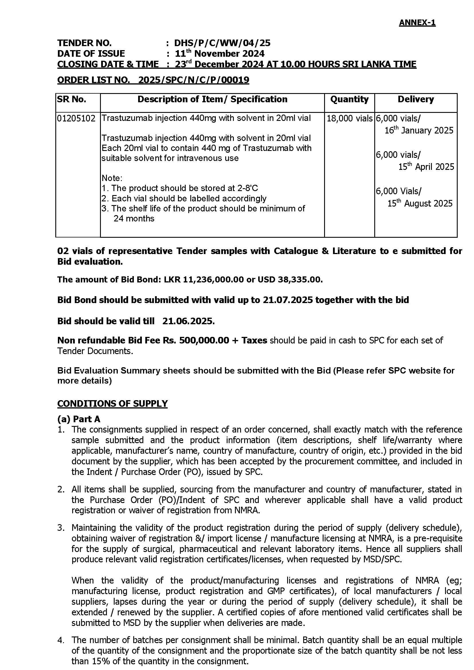 Closing date for the submission of bids is on or before 23rd  December 2024.